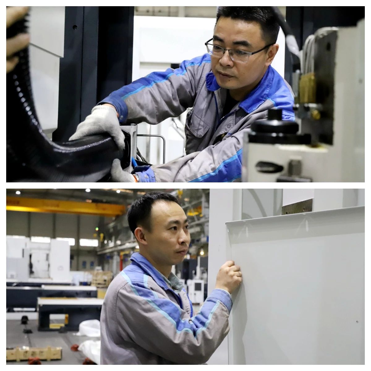 图:沈健师傅和向建师傅正在合力赶制YH3115机床